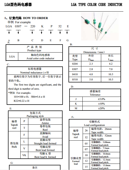 0410色环电感是风华高科常规系列色码电感中较大封装尺寸的产品。电感本体直径4mm,本体长度10.5mm。风华提供该系列常规品共有45个色码电感型号电感量范围在0.22uh~ 1mH之间,误差范围有J档5%,k档10%和M档20%三种,额定电流0.1—1.4A,所以0410的1mh色环电感是发货量很大的一款。