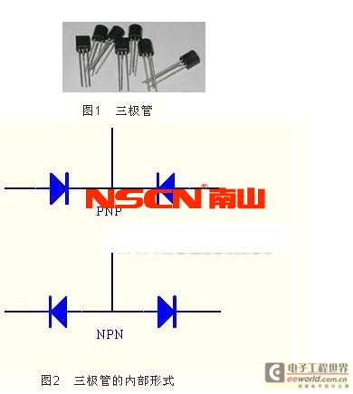 大家知道,三极管是含有两个PN结的半导体器件。根据两个PN结连接方式不同,可以分为NPN型和PNP型两种不同导电类型的三极管,图1是它们的电路符号和等效电路。