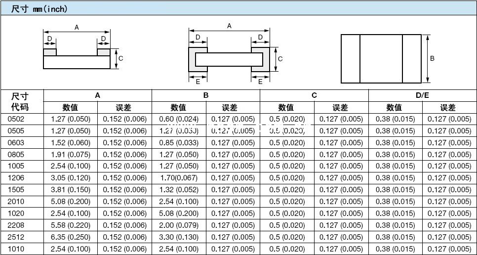 0805:产品尺寸代码