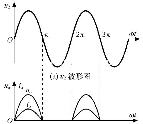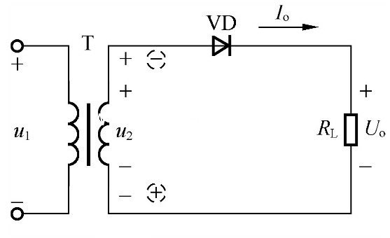 交流电压u1经过变压器变压为u2。当交流电压在正半周时,VD受到正向电压作用导通,电流经过负载RL产生输出电压u0。在交流电压负半周时,VD受到反向电压作用不能导通,RL上无输出电压,这样就将交流电的波形就变为下图所示。