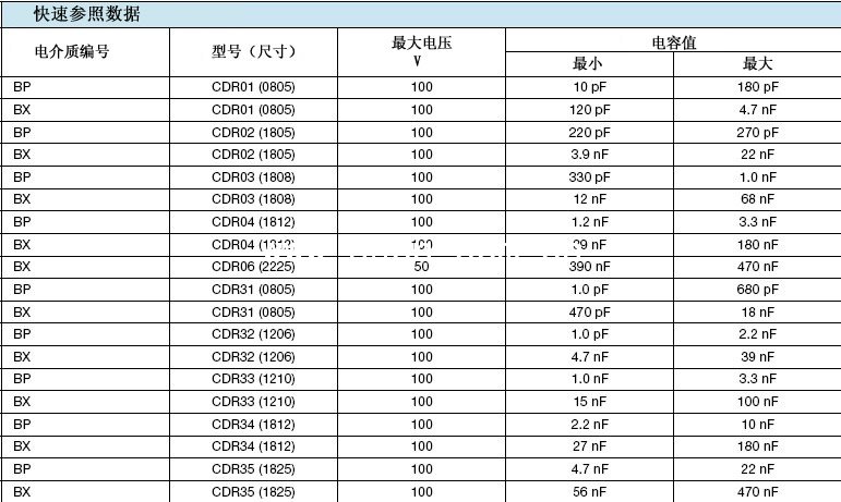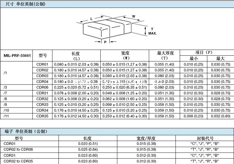 Vishay CDR-MIL-PRF-55681多层陶瓷贴片电容规格(中文)