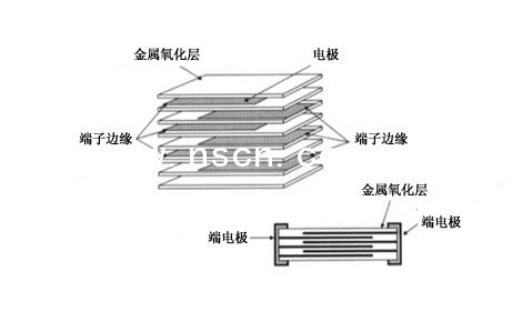 内电极导体一般为Ag或AgPd,陶瓷介质一般为BaTiO3, 多层陶瓷结构通过高温烧结而成。器件端头镀层(外电极)一般为烧结Ag/AgPd,然后制备一层Ni阻挡层(以阻挡内部Ag/AgPd材料,防止其和外部Sn发生反应),再在Ni层上制备Sn或SnPb层用以焊接。近年来,也出现了端头使用Cu的MLCC产品。