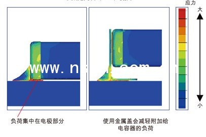 可以通过在电极两端加焊引脚吸收电路板上的张力。