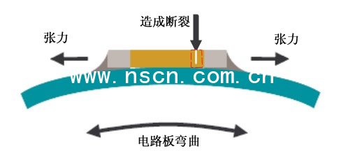 应考虑弯曲的张力对于陶瓷电容的影响。