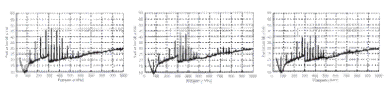 下面是上述三种情况对应的EMI测试结果。结果是磁珠A和磁珠B都会对EMI噪声产生很大的衰减。磁珠A在整个EMI频谱范围内的衰减要稍好于磁珠B。