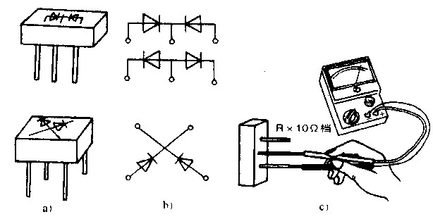 首先将整流器中的整流二极管全部拆下,用万用表的100×R或1000×R欧姆档,测量整流二极管的两根引出线(头、尾对调各测一次)。若两次测得的